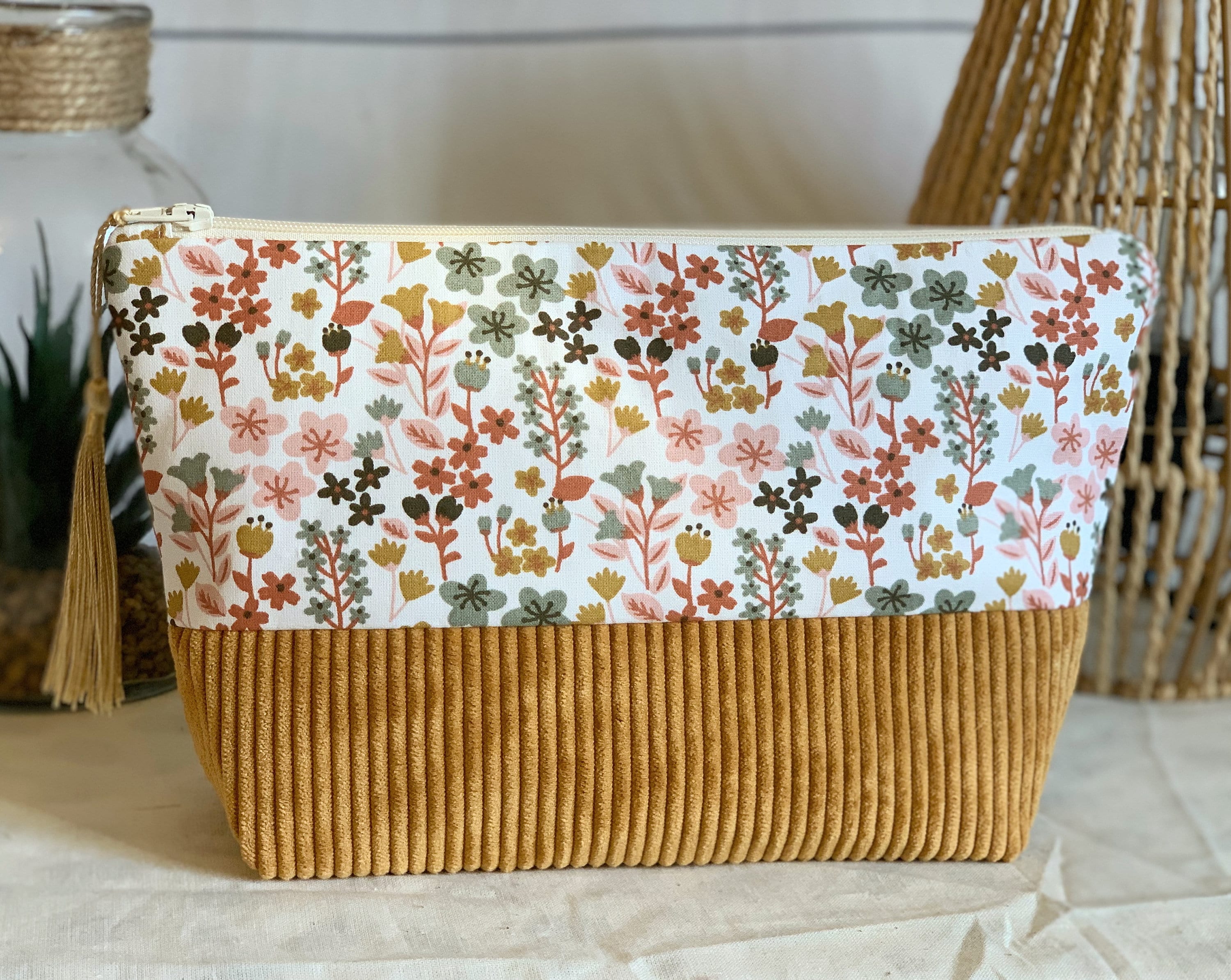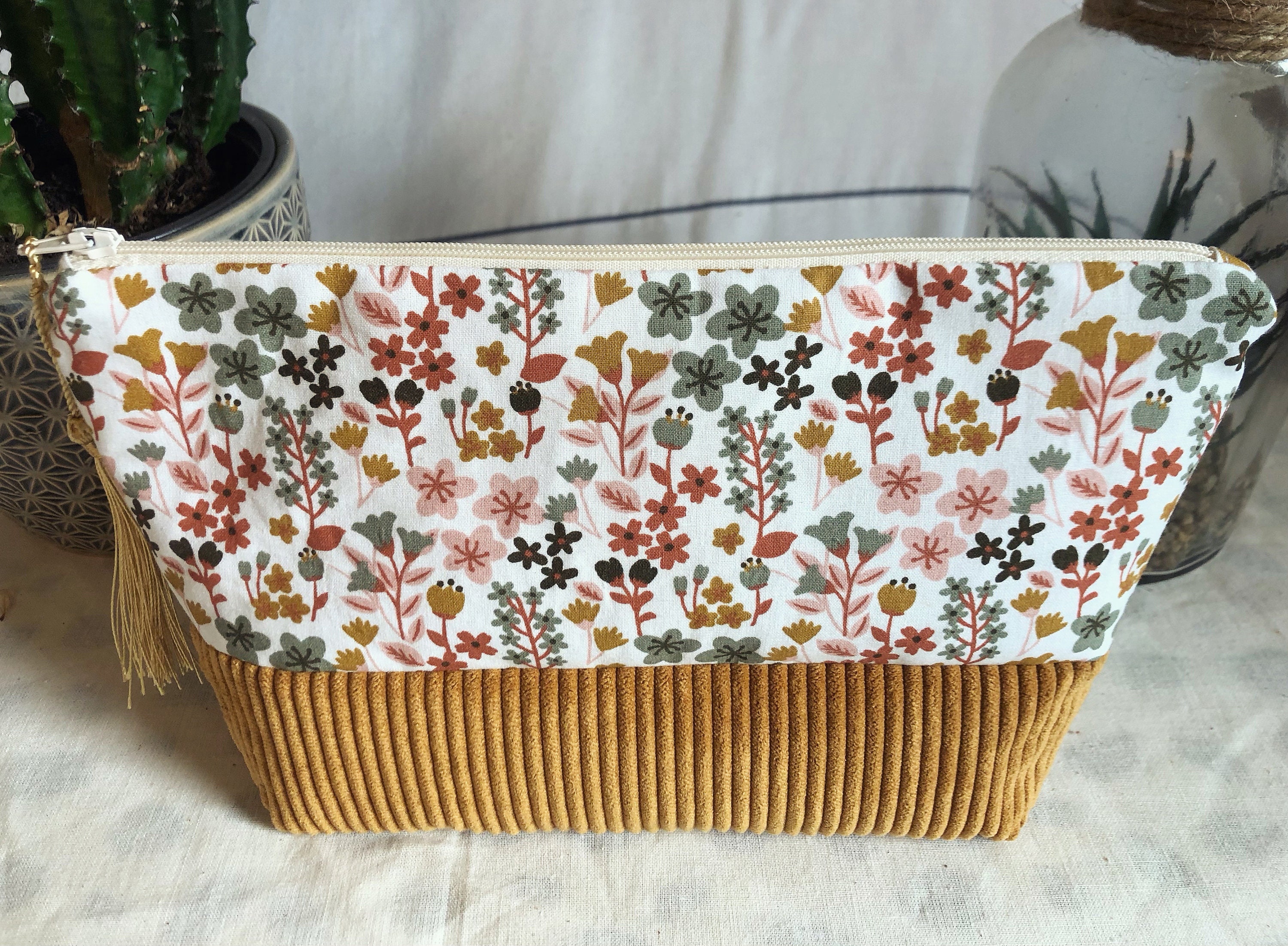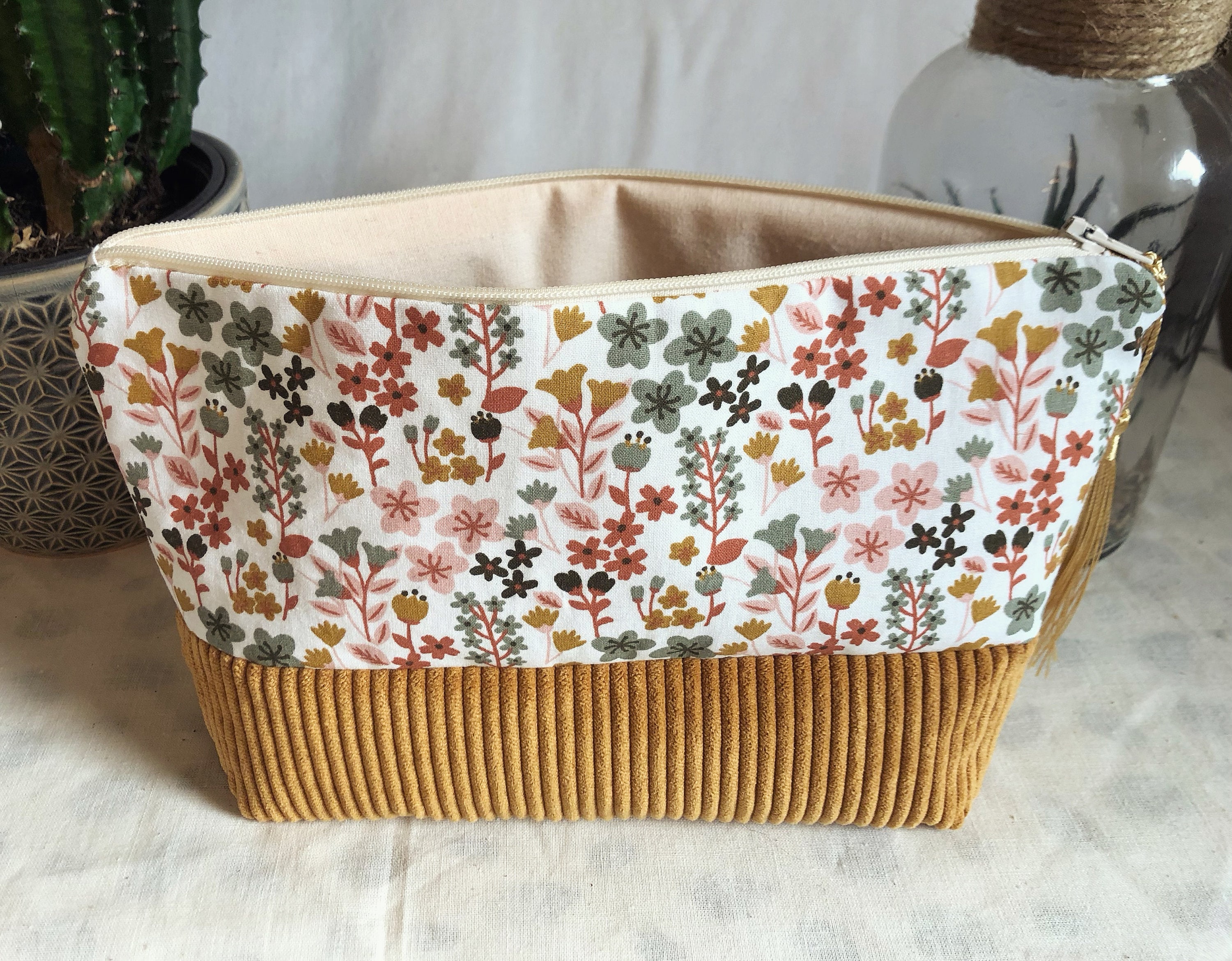 Toiletry bag, floral cotton and corduroy fabric. Off-white cotton lining.Dimensions: L24 cm H17 cm D8 cmA small gift is included with the purchase of this kit 🥰🎁