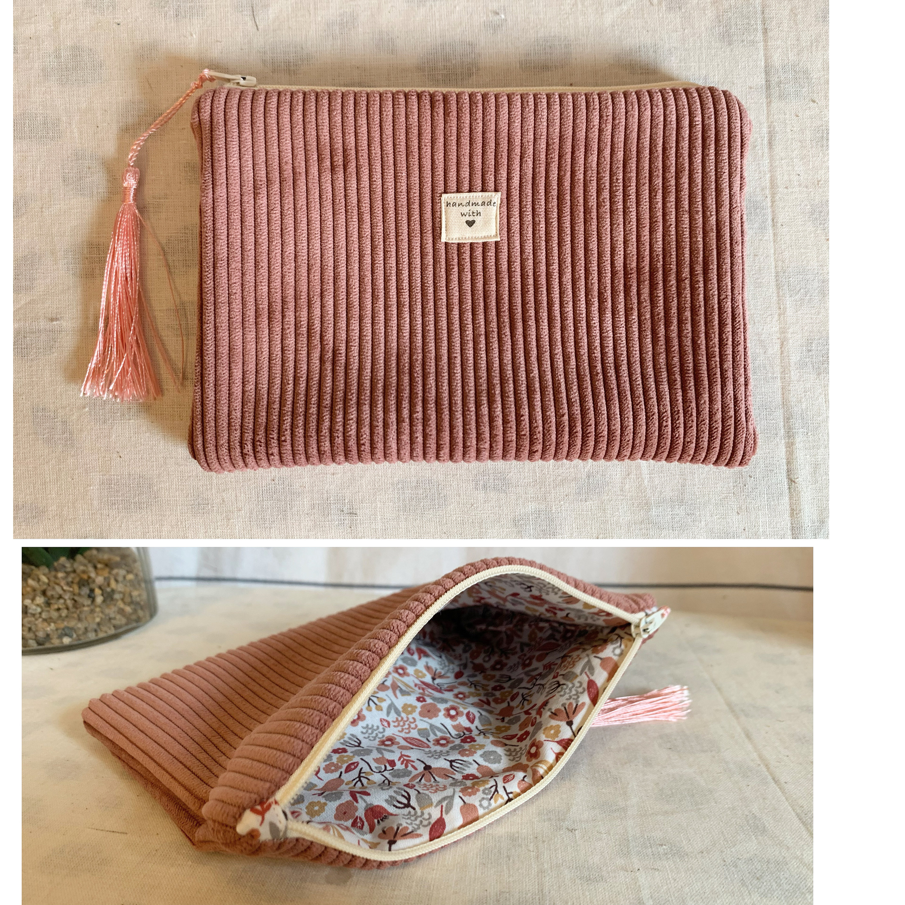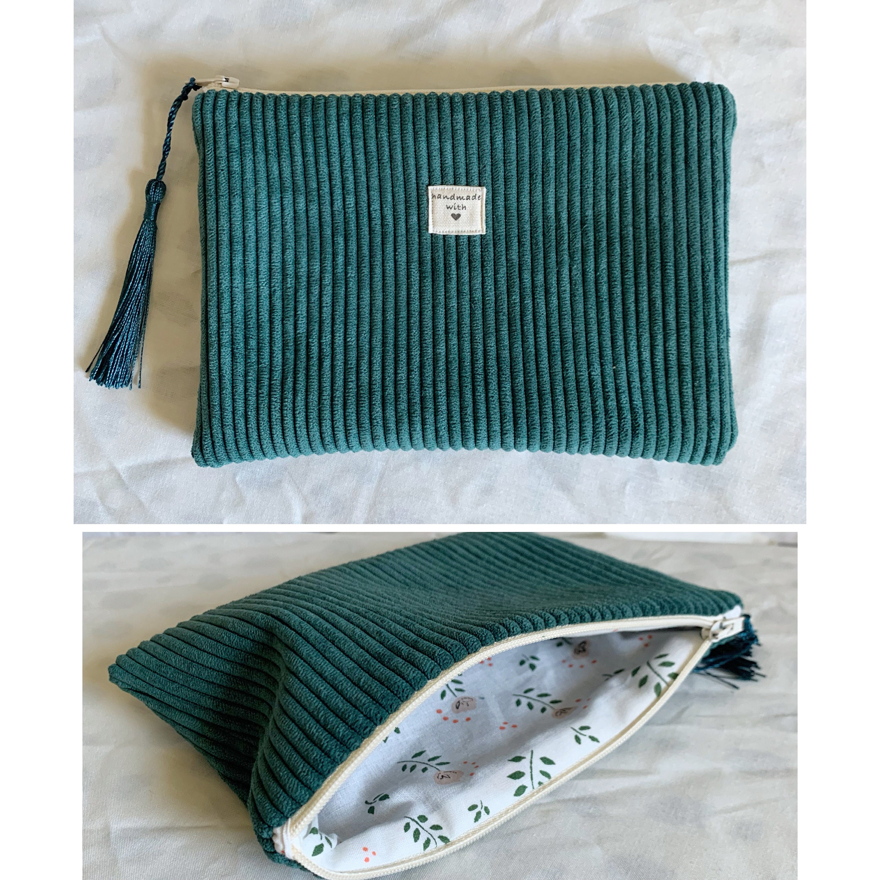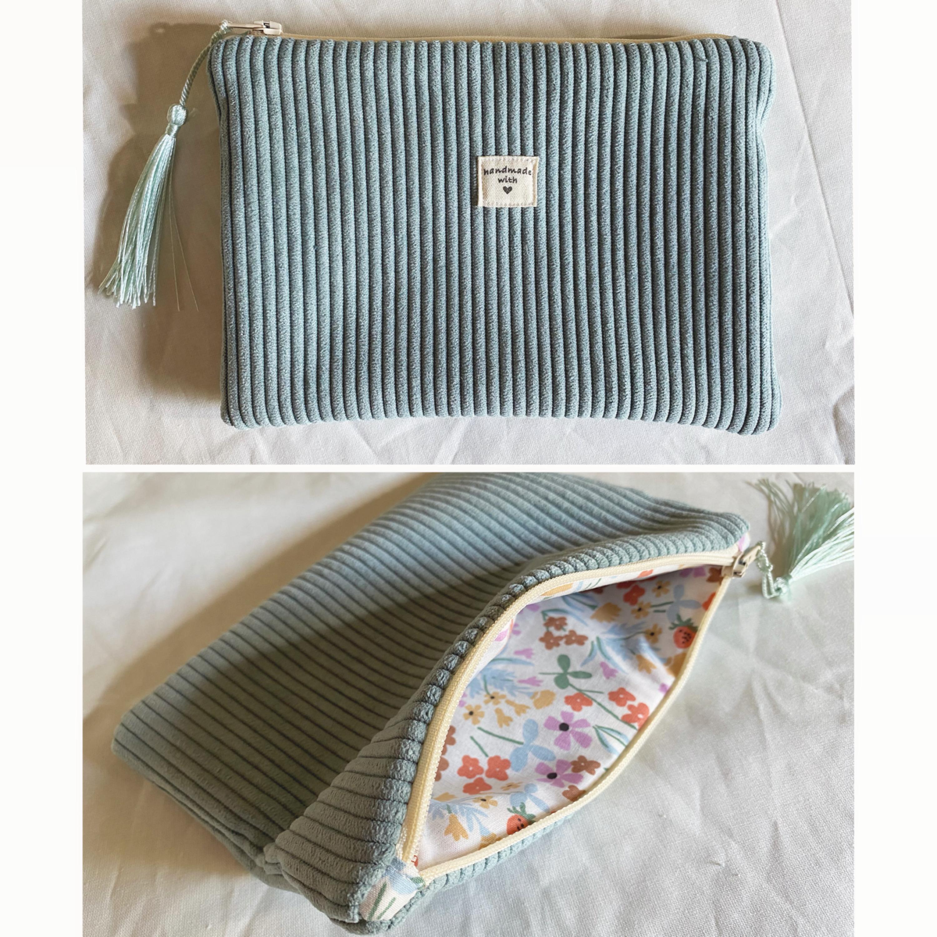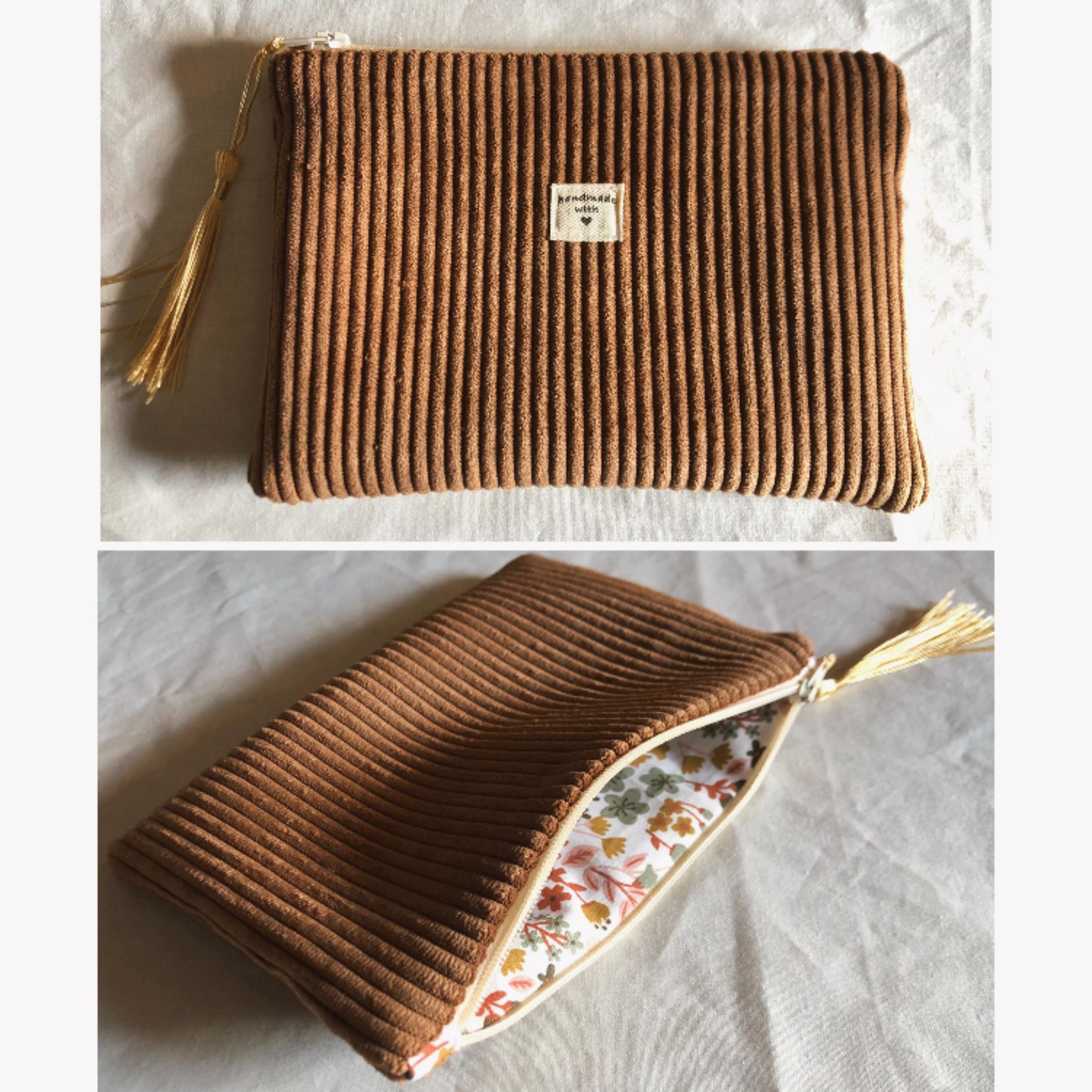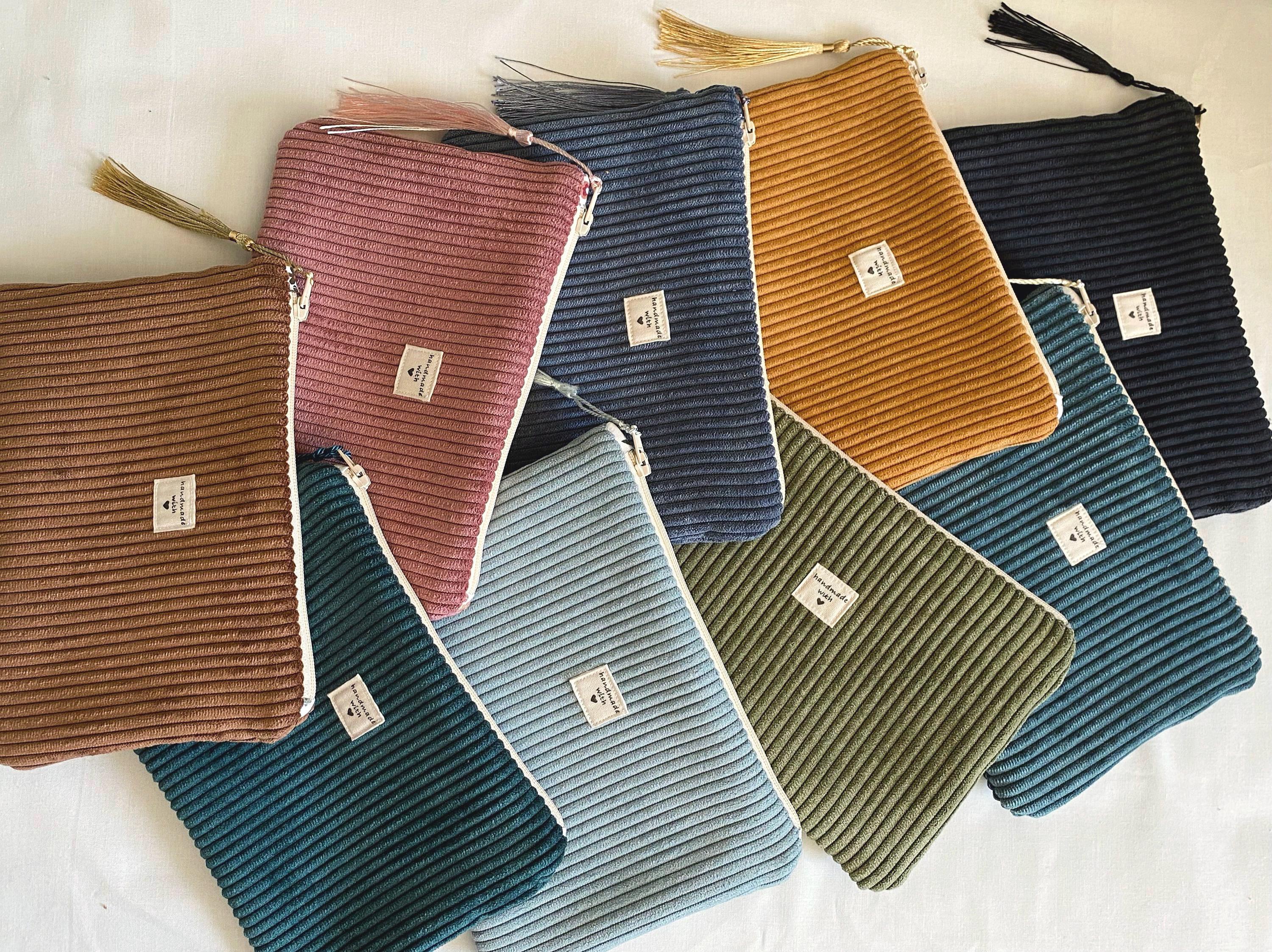 Small corduroy pouch.Patterned cotton fabric interiors.Several models to choose from.Dimensions: Approximately: L19cm H13cm