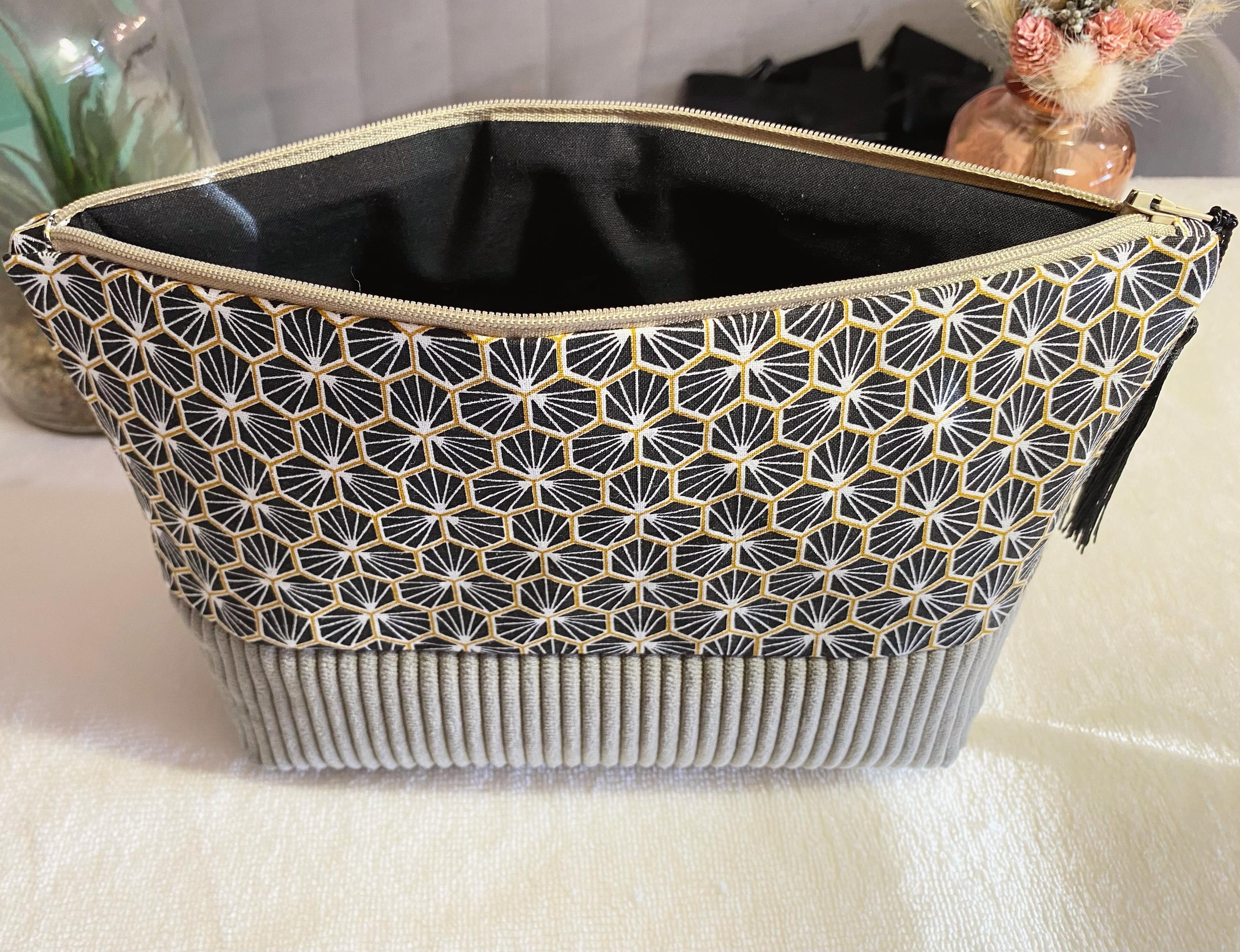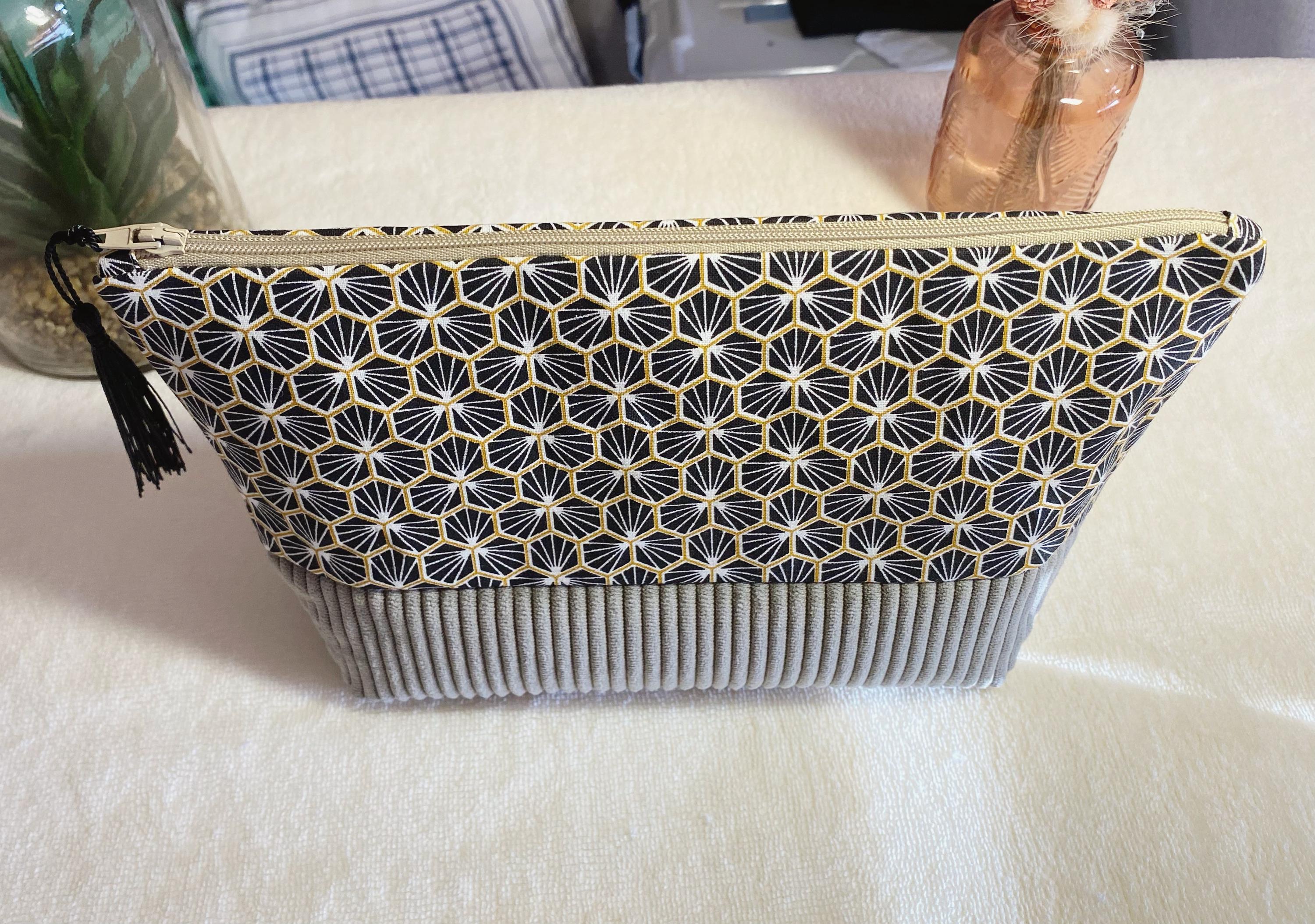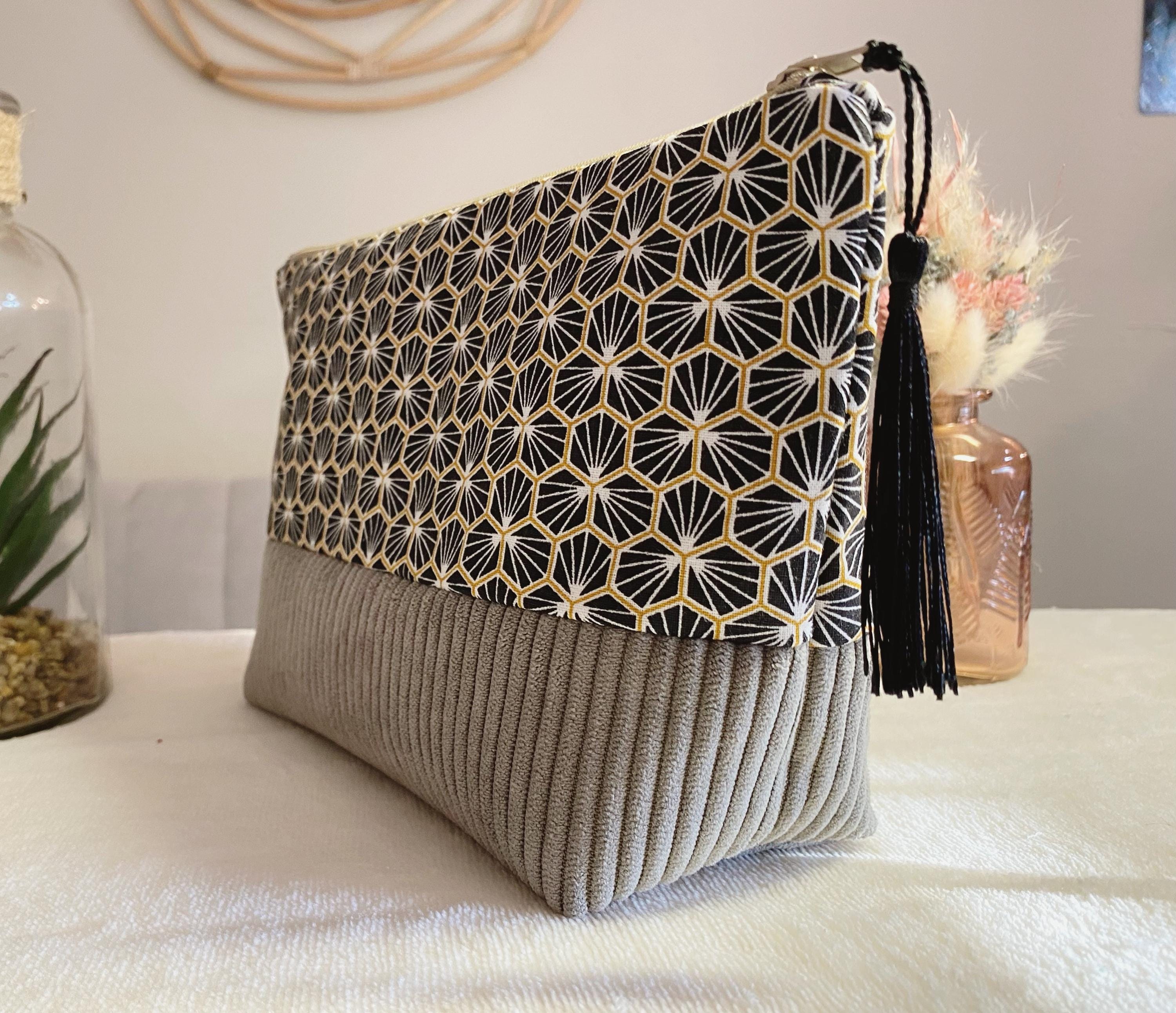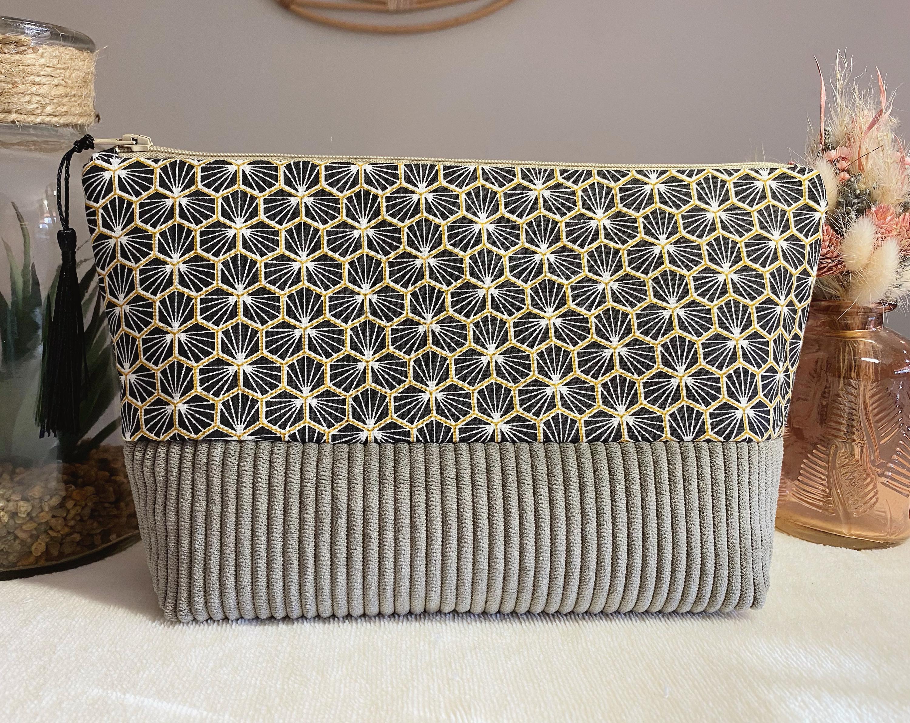 Toiletry bag in cotton fabric and taupe corduroy. Lining fabric in thick beige cotton-polyester.Dimensions: L24 cm H16 cm D 8 cmA small gift is included with the purchase of this kit 🥰🎁