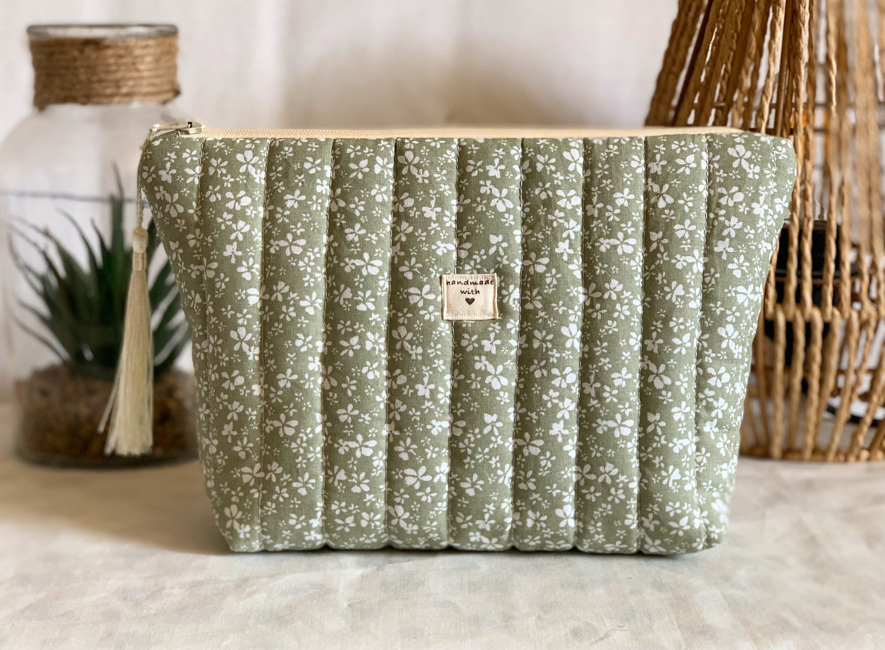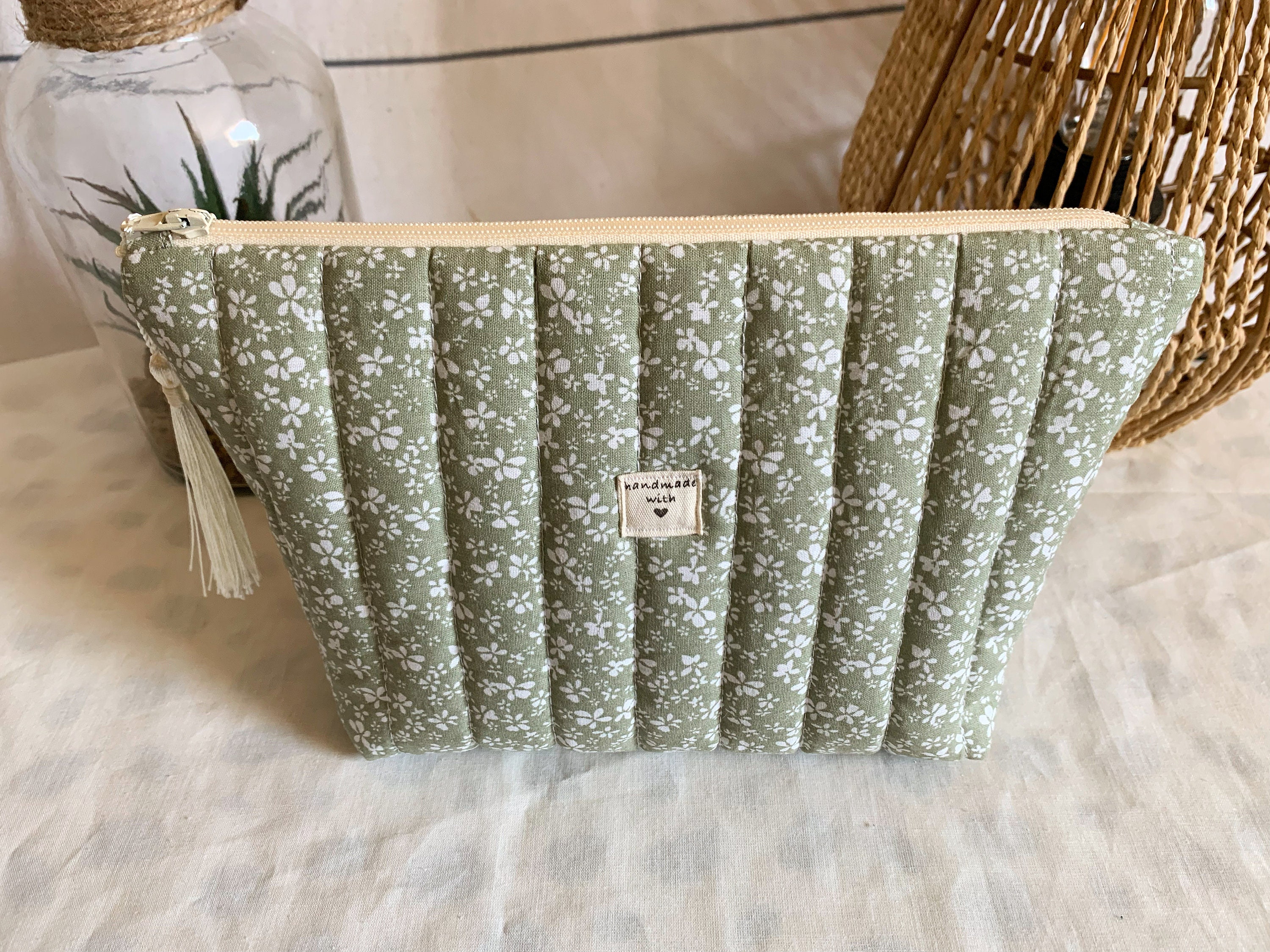 🌸 Toiletry bag 🌸Quilted toiletry bag, wadding interior, ecru cotton lining.Dimensions: L23 H16 D7 cmA small gift included with the purchase of a kit 🎁🥰