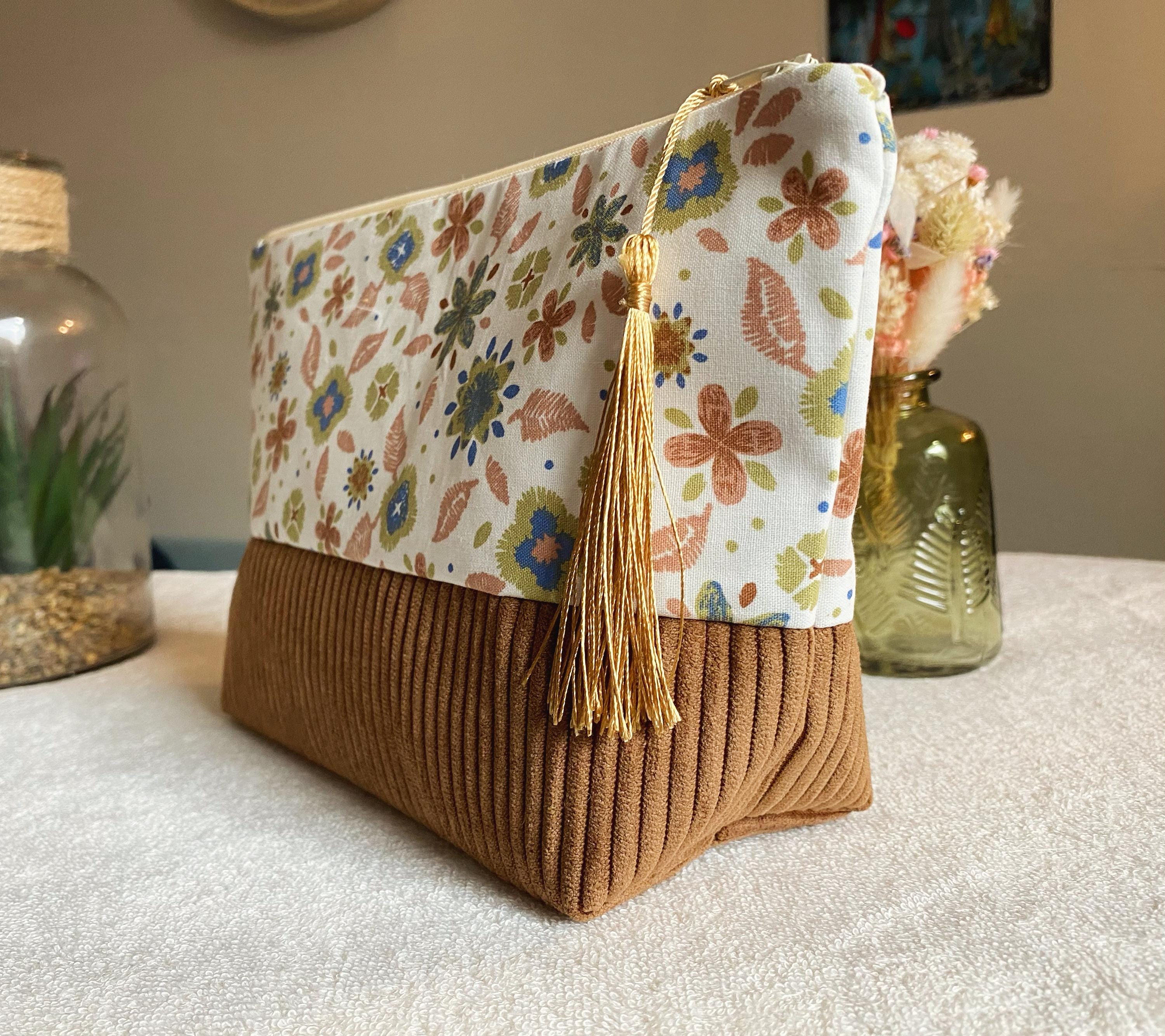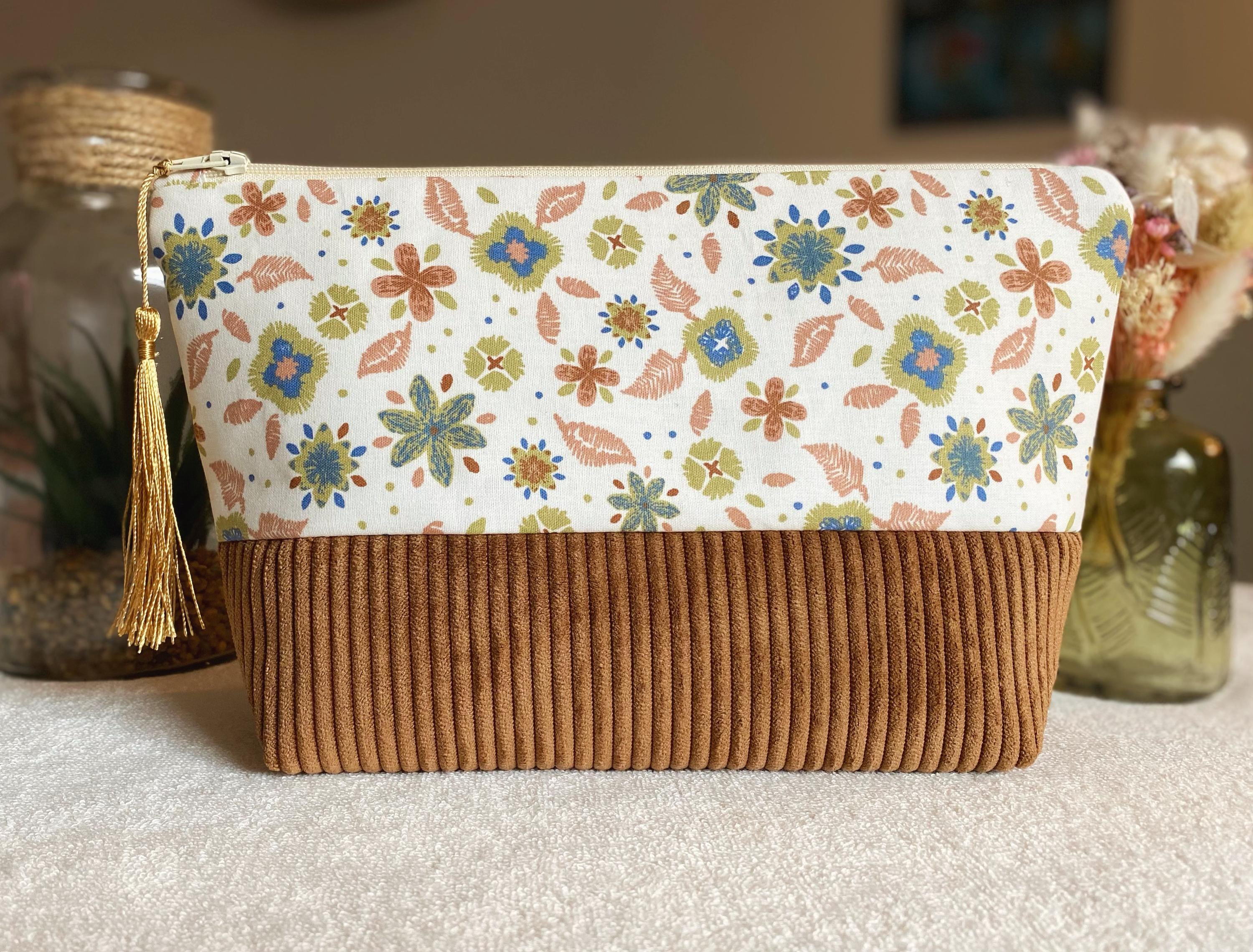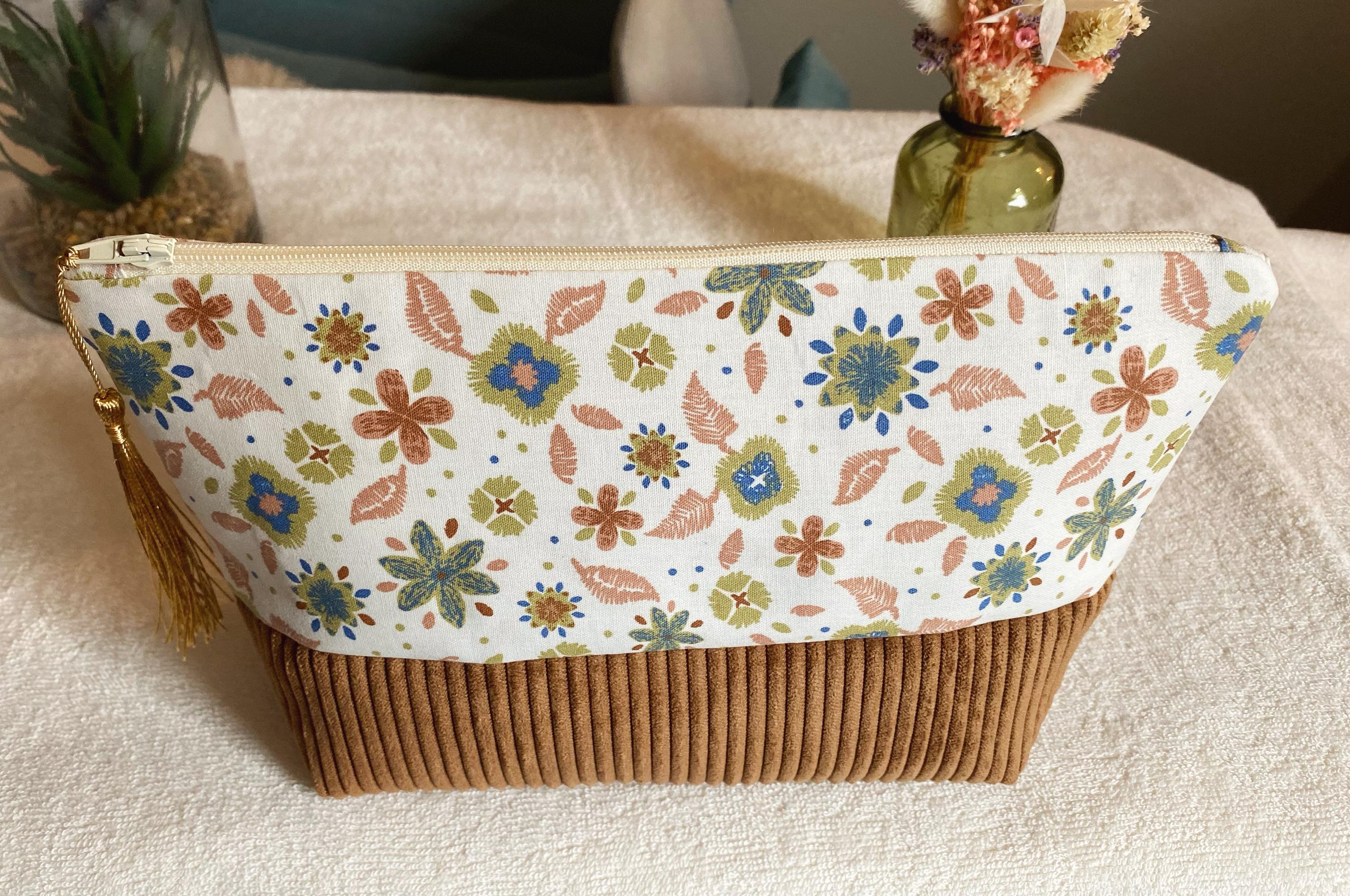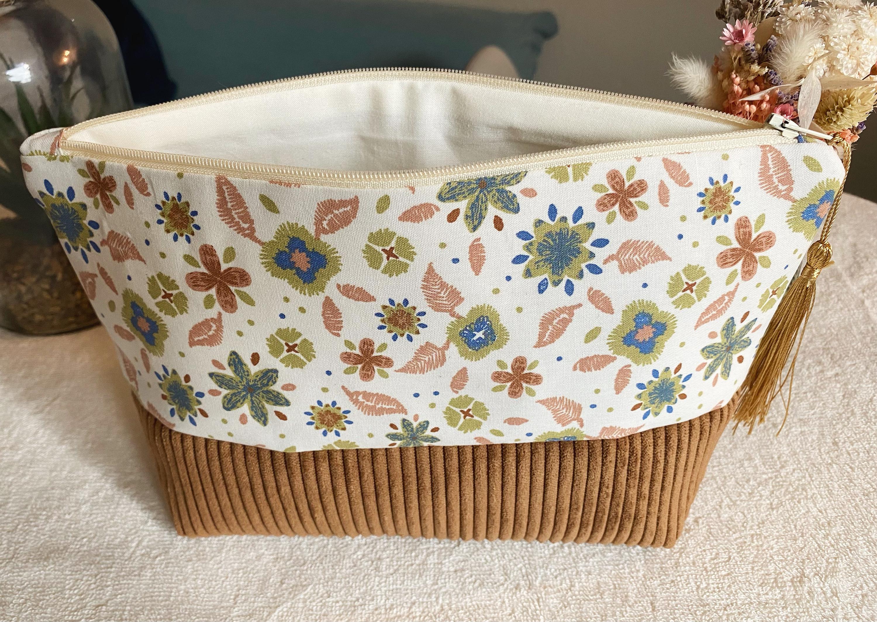 Toiletry bag in floral cotton fabric and corduroy. Lining fabric in ecru cotton.Dimensions: Approximately L24 cm H16 cm D 8 cmA small gift offered with the purchase of this kit 🥰🎁