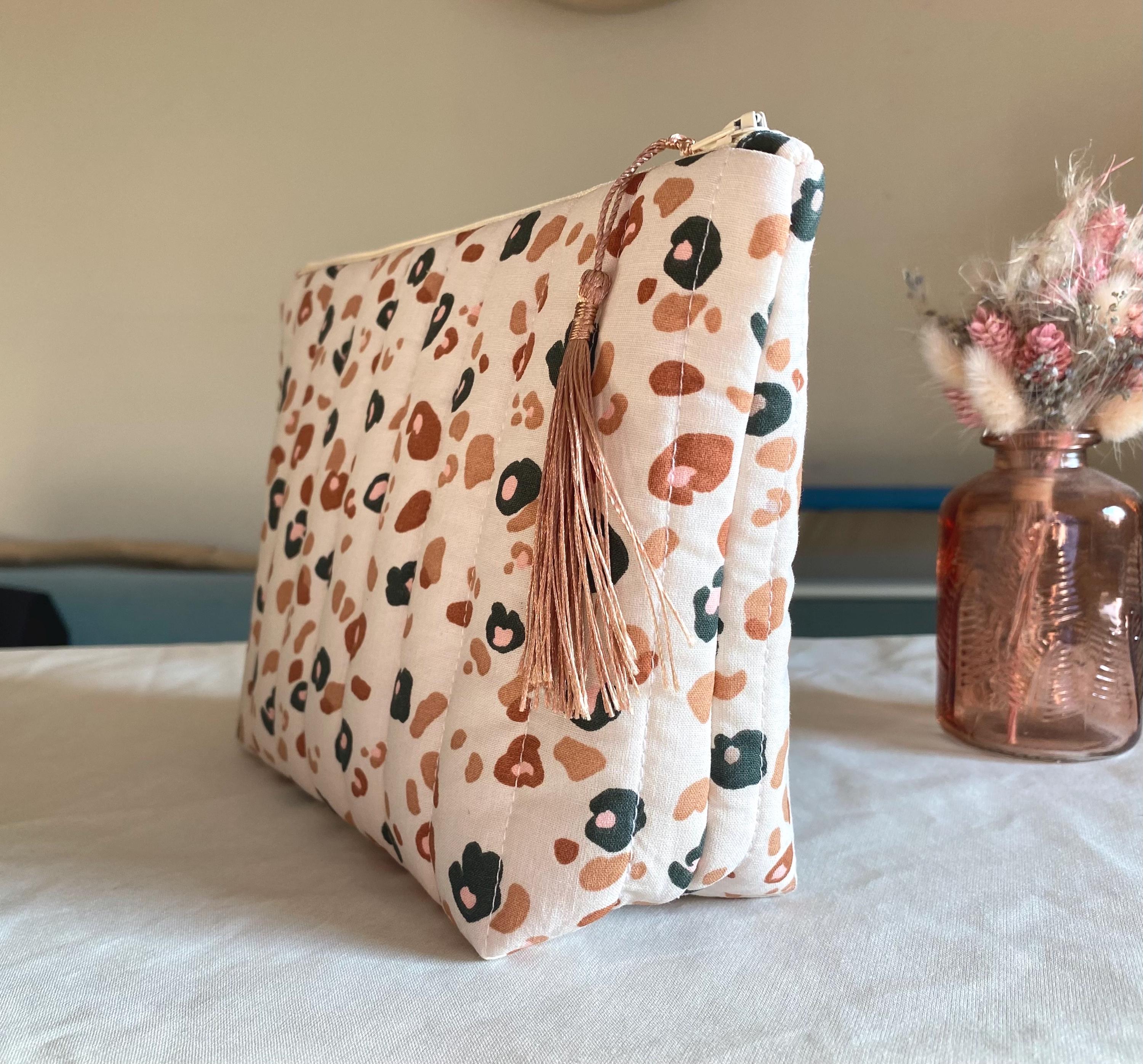 🌸 Toiletry bag 🌸Quilted toiletry bag, wadding interior, ecru cotton lining.Dimensions: Approximately L23 H16 D7 cmA small gift included with the purchase of a kit 🎁🥰